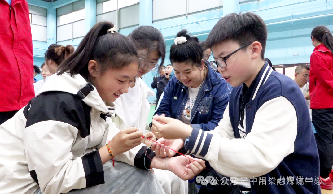 活动伊始,每位到场的参与人员都领取了一条精美的五彩绳,寓意驱邪避灾、平安吉祥。并邀请县级非遗“绳编”技艺传承人冯宝珍老师为大家现场讲解传统制作技艺。这些看似简单的绳结,承载着祖先的智慧——“结”即是“吉”,一根红绳串起的是祝福,缠绕的是传承,编织的是我们共同的文化记忆。人们用五彩丝线编成不同形状,缠绕在手腕上,不仅带来了节日的祝福,也拉开了活动的欢乐序幕。