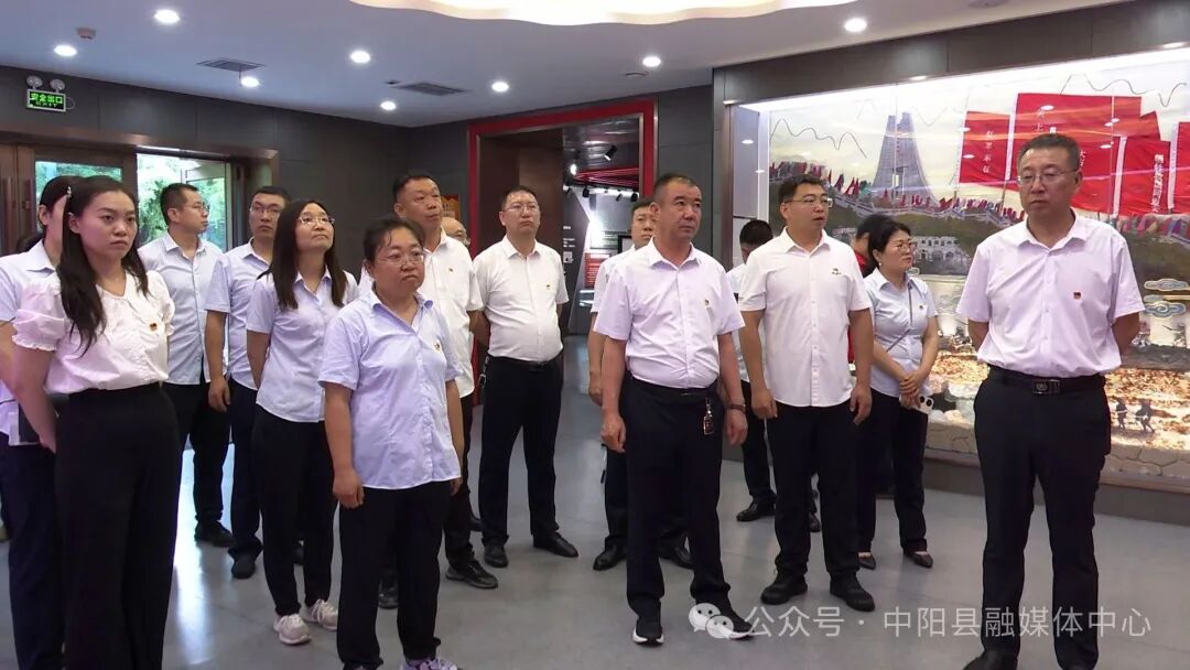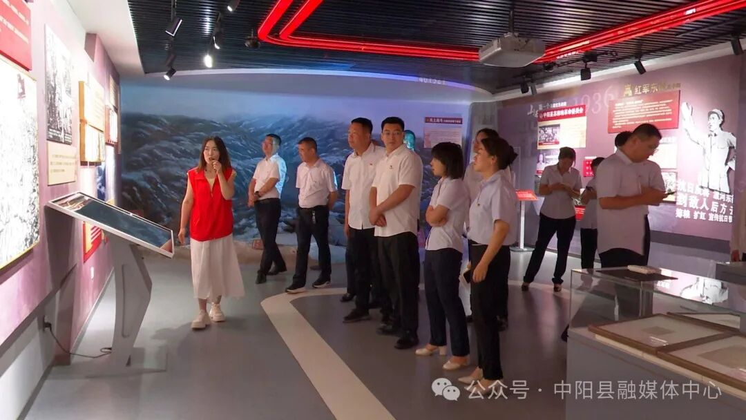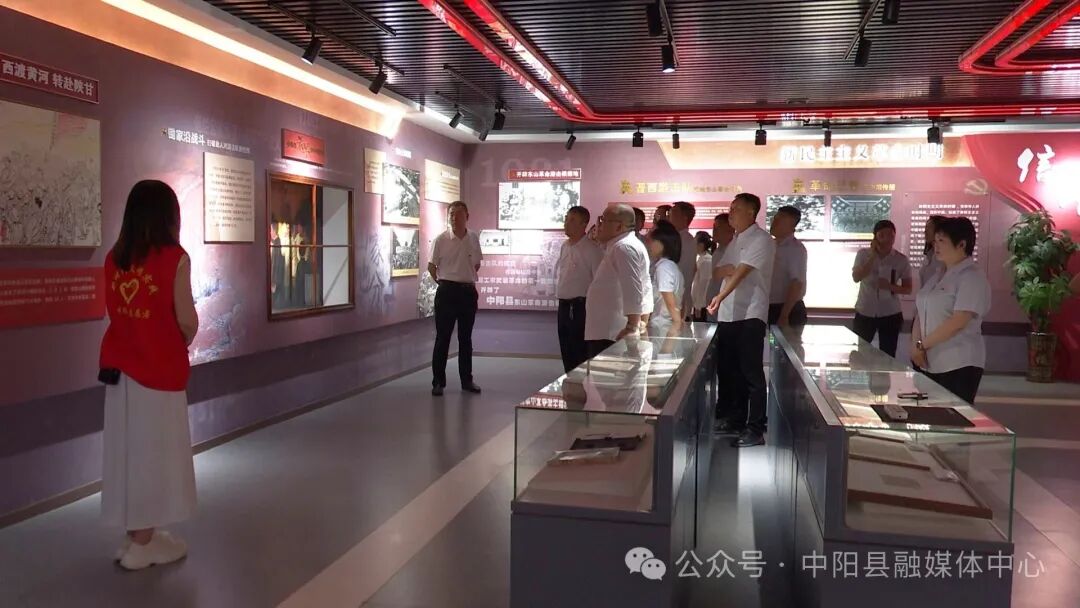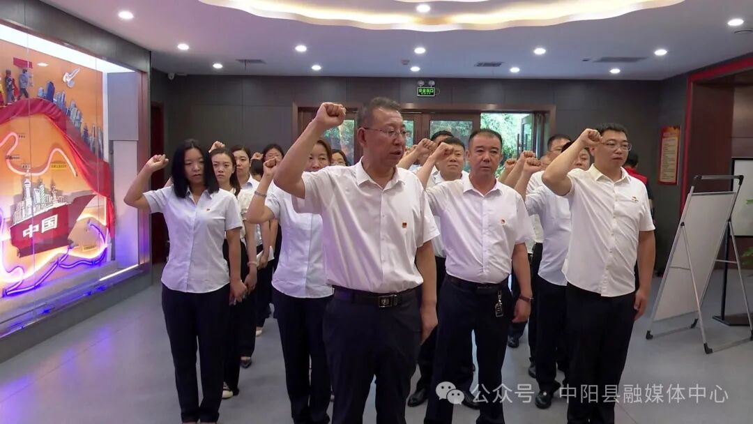 党课结束后,党员们通过一次沉浸式参观“红色初心中阳展”共寻红色印记,聆听讲解,深刻感悟本地红色历史和革命精神。参观结束后,全体党员面对党旗,由支部书记领誓重温入党誓词,集体过“政治生日”。