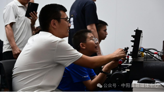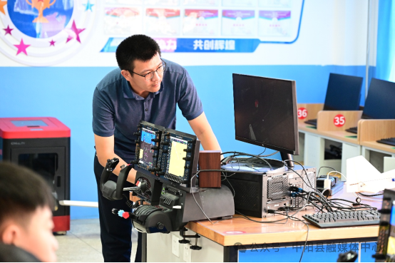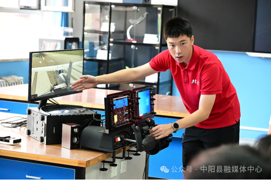在体验环节中,队员们倾力指导同学们操作模拟设备,从调整飞行姿态到模拟起降,耐心纠正每一个操作细节。中阳一中的冯同学表示,这是其第一次接触模拟飞行,她说:“今天的研学让我学到许多没有学到的知识,了解了关于飞行器姿态、仪表盘等相关内容,希望未来为祖国的航空航天事业做出贡献。”